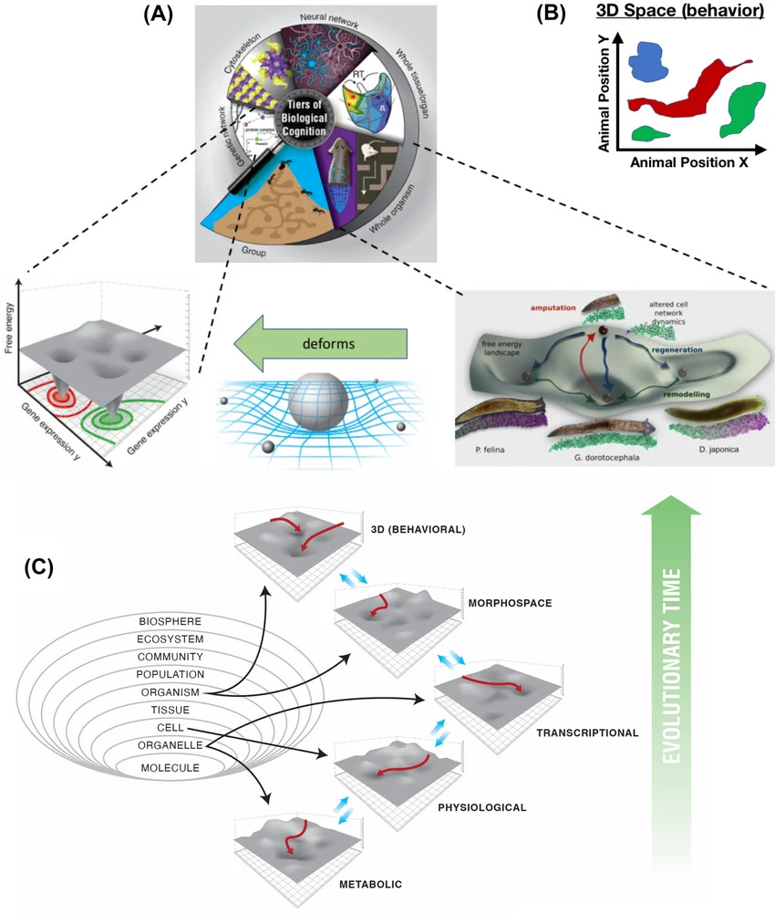 Michael Levin’s lab has been making this legible for years. Planaria cut into fragments regenerate correctly because each fragment retains access to a landscape whose attractors are “head” and “tail” in the right places. Xenopus embryos with rearranged facial organ positions re-sort toward the canonical face during development. The target is a dynamical feature, a set of attractors in the morphogenetic state space, and it’s robust to perturbations that would break a blueprint.